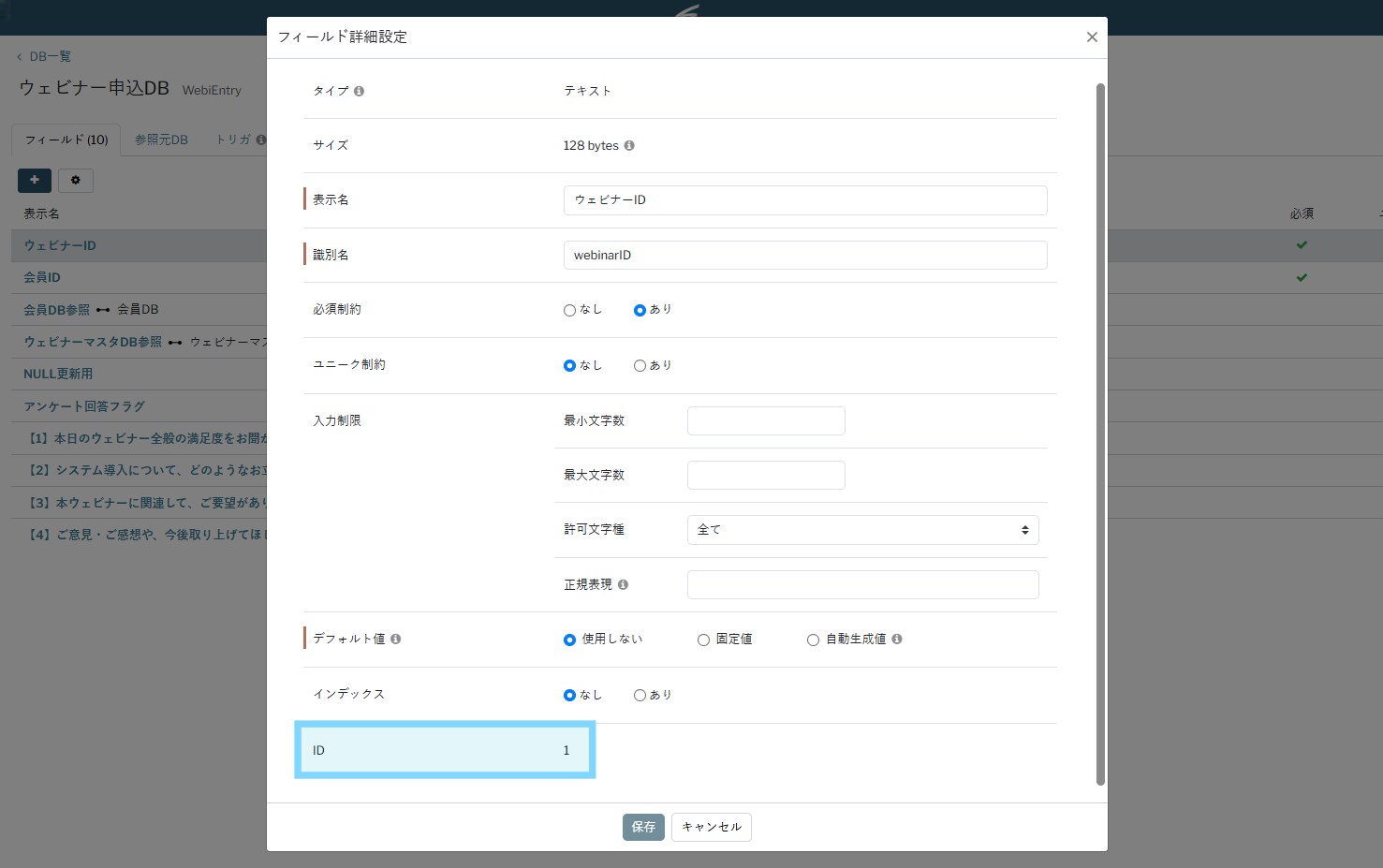 | webinarDB_ID | ウェビナー管理アプリ-ウェビナー申込DBのID |