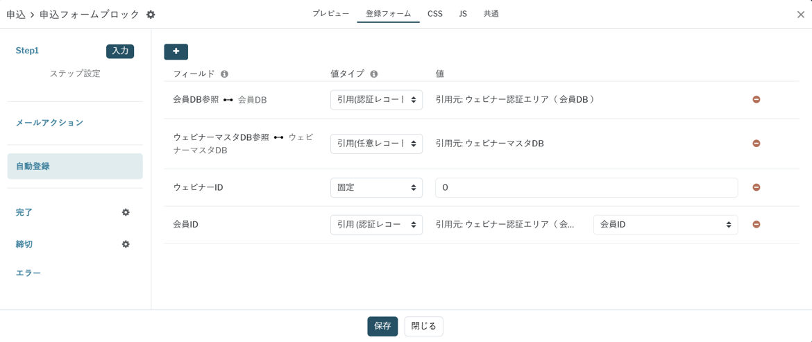 | ブロック機能 | 登録フォーム 会員登録・ウェビナー申込 で使用しています |