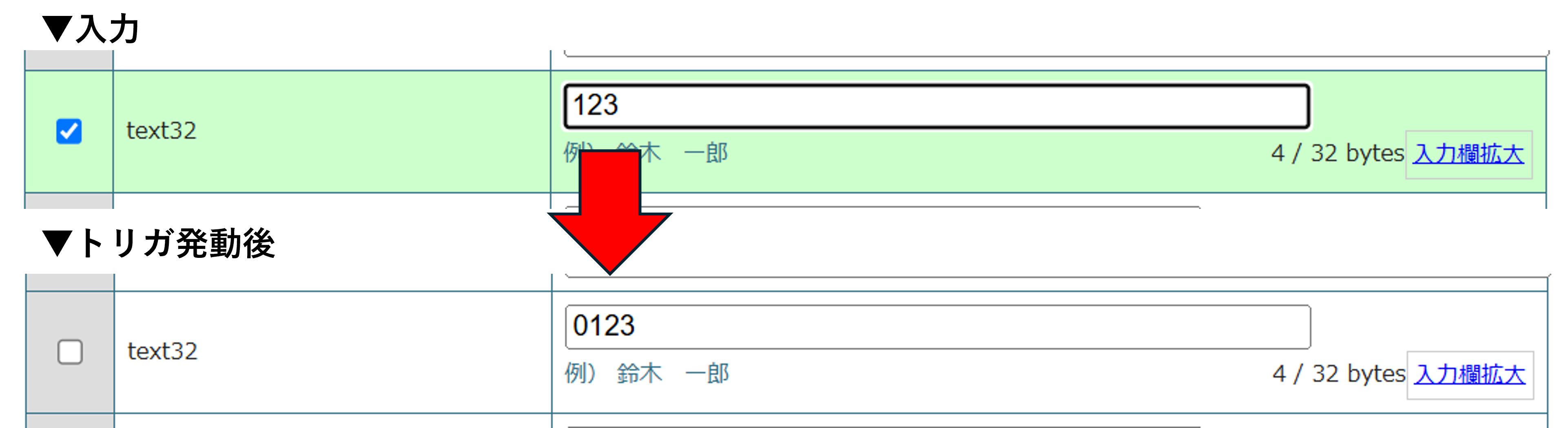 本記事ではトリガ機能を使用してDBのテキストフィールドに対し、数字が登録・更新された際に0埋めを行い、桁数を揃える方法をご紹介いたします。
