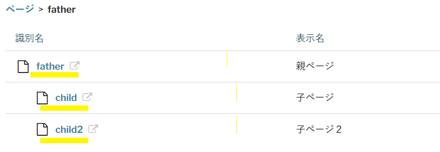 各ページは親子関係を作ることが可能です。