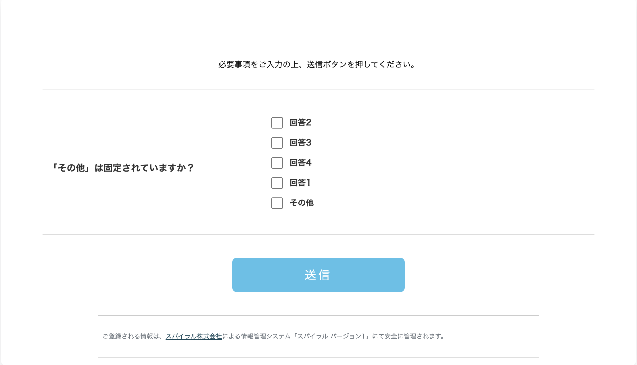 ・「回答1~4」「その他」部分は、表示させたい選択肢の名称に変更してください。