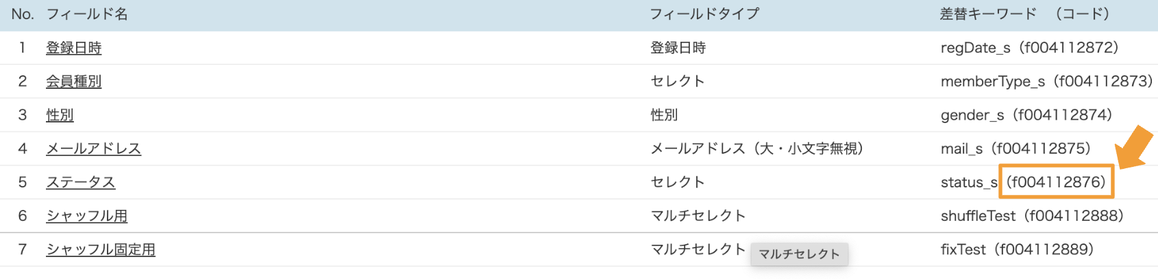 フィールドコードの確認方法