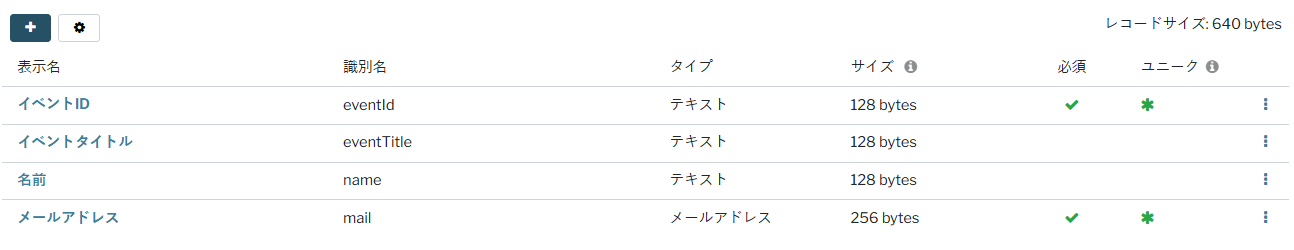 項目名 識別名 フィールドタイプ DB上で必須な属性