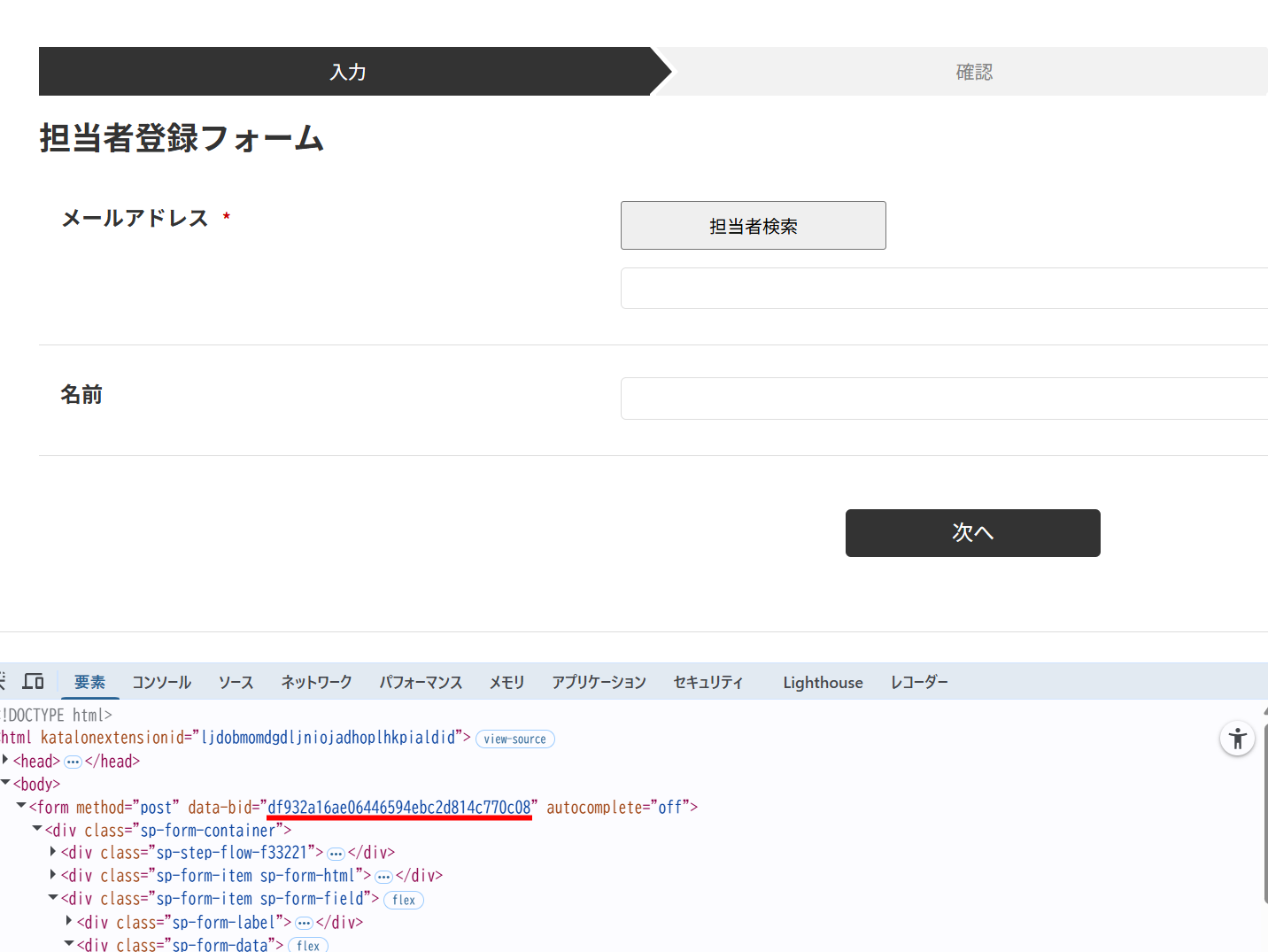 ・フォームのdata-bid