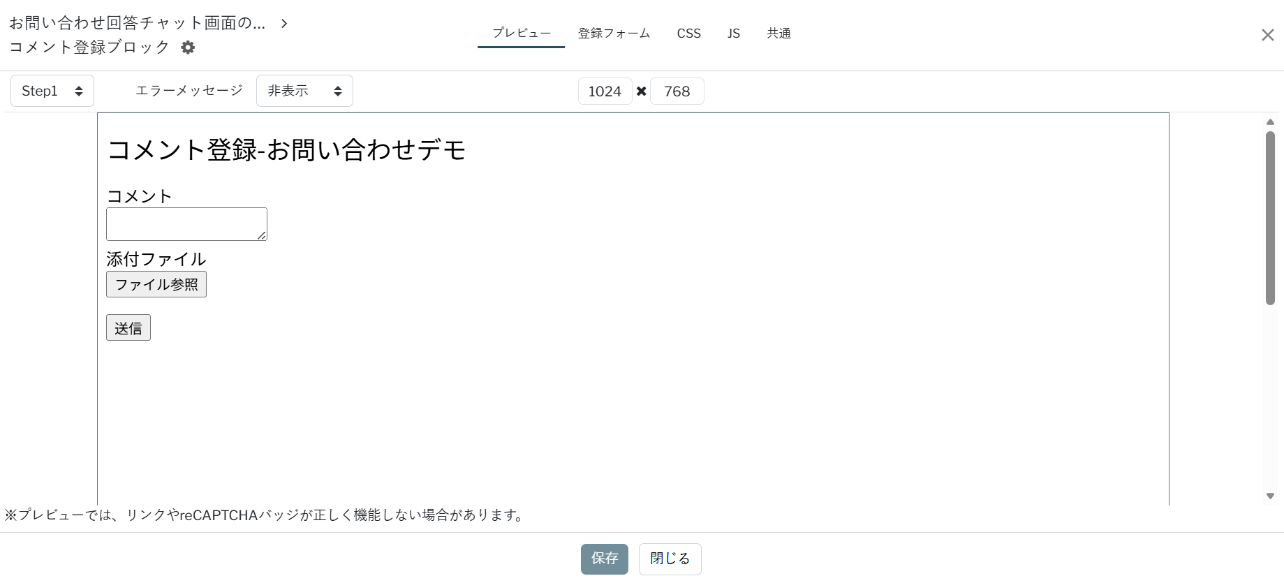 手順5、6、7で作成したブロックおよびヘッダー・フッターを、回答チャットページに埋め込みます。