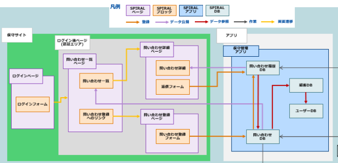 添付画像のようなシステム構成で問い合わせ管理システムを作成したいと考えております。 その際、以下2つの内容について、標準機能で実現可能か、それともJavascriptやPHPを用いたコード開発が必要になるのかを確認させていただきたく、質問しました。 ・問い合わせ詳細ページのリストブロックに、問い合わせDBに持っている問い合わせIDをキーとして、問い合わせ履歴DBのレコードを表示することは標準機能で可能でしょうか。 ・問い合わせ詳細ページ内に返信フォームのような形で、直接問い合わせ履歴DBに情報を登録できるような、入力フォームを設けることは標準機能で可能でしょうか。 ご確認のほどよろしくお願いします。
